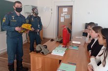 Преподаватель ОБЖ Бешенцев С.Н. познакомил учащихся 8-9 классов с первичными средствами пожаротушения, ребята закрепили правила безопасного поведения при пожаре.