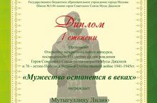Учащиеся школы Мутыгуллина Лилия (рук.Сунгатуллина Н.М.), Потасьева Анастасия (рук.Потасьева В.А.) стали победителями и призерами межрегионального конкурса "Мужество останется в веках", просвященном поэту -герою Мусы Джалилю. Поздравляем!!!