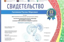 Учащиеся 5Г класса,Галлямов Руслан и 5В класса,Хузина Самира были награждены свидетельством об участии в республиканской интернет-олимпиаде на знание правил безопасного поведения на дорогах.