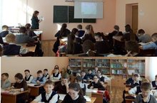В информационно-библиотечном центре в рамках предметной недели русского языка и литературы для учащихся 8Б класса (учитель Хуснуллина И.Г.) и 8Г класса (учитель Потасьева В.А.) состоялся Час поэзии о войне. Учащиеся 8Б класса прочитали стихотворения о Великой Отечественной войне М.Ждалиля, А. Твардовского, К. Ваншенкина и других. А учитель русского языка и литературы Потасьева Виктория Александровна познакомила собравшихся со стихами собственного сочинения "Баллада о лошади", "Сидели двое", "Сталинград".