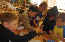 Сегодня в лагере ребята занимались художественным трудом. Они делали панно из пластилина и семян растений. Для украшения его использовали разный материал: искусственные цветы и листья, бусины, стразы, бантики. Во второй половине дня с ребятами проведено мероприятие "Турнир знатоков природы". В программе: блиц-викторина, конкурс загадок, коллективный рисунок животного, конкурс "Изобрази животное".