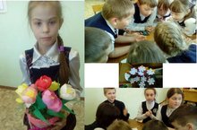 Сегодня в 3 «В» классе провели внеклассное мероприятие «А у нас, а у нас, самый в мире дружный класс». Дети самостоятельно выполняли задания и провели мастер классы по изготовлению поделок. Бүген 3 “В” сыйныф укучылары “Безнең сыйныф иң дус сыйныф” диеп исемләнгән уен – кичә үткәрделәр. Күргәзмәгә алып килгән эшләрен ясау тәртибе белән таныштырдылар
