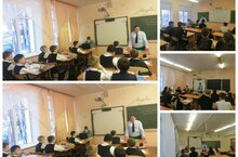 Урок Мужества с учащимися школы провели Дудин Николай Николаевич и Шигабутдинов Рашид Хамитович /Чистопольское городское отделение, межрегиональный Союз Советских Офицеров имени героя Советского Союза адмирала Ховрина/