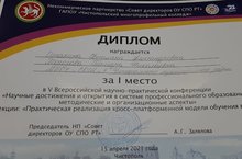 V Всероссийская НПК " Научные достижения и открытия в системе профессионального образования:методические и организационные аспекты" 16.04.2021