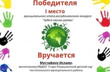 Наш воспитанник участвовал в муниципальном этапе республиканского конкурса "Чудеса своими руками" по экологии и стал победителем./ Бакчабызда тәрбияләнүче балабыз экология темасына багышланган "Үз кулларың белән ясалган могҗиза" исемле республика конкурсының муниципаль этабында катнашты һәм җиңүче булды.