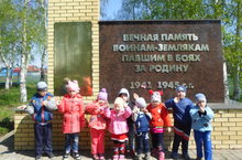 Бөек җинү көне уӊаеннан балалар белән авылыбыздагы Бөек Ватан сугышында ятып калган авылдашларыбыз хөрмәтенә куелган һәйкәлгә экскурсия оештырылды. Җиӊү, сугыш, тынычлык темасына әӊгәмә үткәрелде