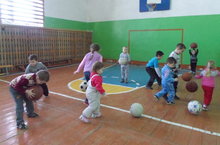 Занятие по физической культуре в спорт зале школы "Игровые упражнения с мячом"