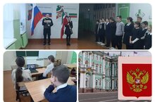 Традиционное начало учебной недели: вынос флагов РФ и РТ,исполнение гимна РФ и РТ, "Разговоры о важном"- Символы России.