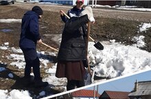 Мәктәп территориясен корыган яфраклардан чистарту буенча өмә.