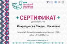 Укучылар һәм укытучылар "Зур этнографик диктант -2020" Халыкара мәгърифәтчелек акциясендә актив катнаштылар. Ул киң җәмәгатьчелек игътибарын, милләтара тынычлык һәм татулык мәсьәләләрен хэл итә.