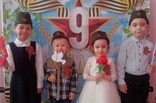 Бакчада йөрүче балалар белән үзләренең Бөек Ватан сугышында катнашкан бабайларының фотолары белән Үлемсез полк оештырдык.