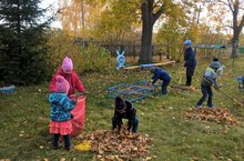 Һәр атнаның чәршәмбе, җомгасы өмә белән башланып китә. Менә бүген дә балалар һәм апалар белән мәйданчыкка яфраклар җыярга чыктык.