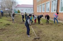 Укучылар мәктәп территориясен чүпләрдән чистарттылар.