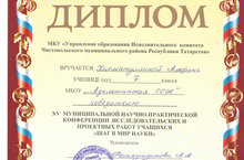 Күренекле язучы, драматург һәм сәясәтче Гаяз Исхакыйның тууына 140 ел тулуга багышланган IV республикакүләм фәнни - гамәли конференциянең "Балалар иҗаты" секциясендә Камалова Л. 1 урынны алды, укытучысы Хамидуллина И.А.