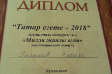 "Сүнә белми торган ялкын" дип исемләнгән муниципаль конкурста Камалова Л. 1 нче дәрәҗәдәге диплом белән бүләкләнде.