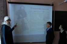 Әдәби дәрестә язучының тормыш юлы, әсәрләре турында, сөйләнде, "Зөләйха" исемле видеофильмның өзеге күрсәтелде.