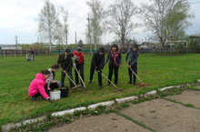 Мәктәпнең тирә - ягын җыештыруда укучылар, укытучылар һәм техник хезмәткәрләр катнашты.
