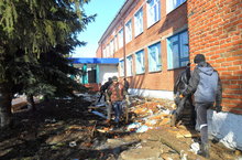 8, 10 сыйныф укучылары мәктәп янын җыештырдылар.