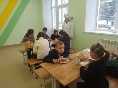 Сегодня представитель родительской общественности 1 и 4 класса Кашапова Г.И. совместно с администрацией школы посетили школьную столовую. В ходе контроля было проверено соответствие реализуемых блюд утвержденному меню, санитарное состояние обеденного зала, соблюдение графика приема пищи, соблюдение правил личной гигиены. Замечаний к организации питания нет. Меню соответствует цикличному меню, выставлены контрольные блюда, работники столовой соблюдают санитарно- гигиенические требования при раздаче готовых блюд.