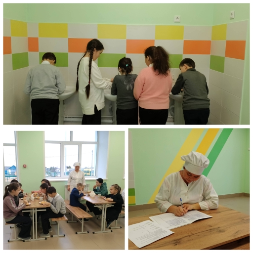 Сегодня представитель родительской общественности 1 и 4 класса Кашапова Г.И. совместно с администрацией школы посетили школьную столовую. В ходе контроля было проверено соответствие реализуемых блюд утвержденному меню, санитарное состояние обеденного зала, соблюдение графика приема пищи, соблюдение правил личной гигиены. Замечаний к организации питания нет. Меню соответствует цикличному меню, выставлены контрольные блюда, работники столовой соблюдают санитарно- гигиенические требования при раздаче готовых блюд.