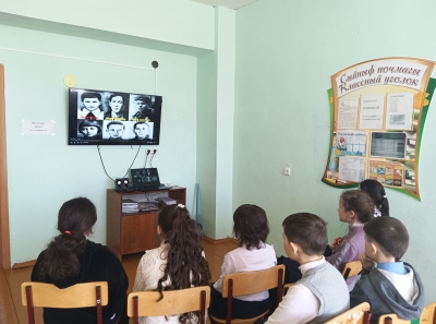 В преддверии 80 годовщины Великой Отечественной войны в начальных классах прошёл классный час на тему: «Маленькие герои большой войны». Вниманию детей была предложена презентация о детях войны. Ученики узнали как, отложив недочитанные книжки и школьные учебники, они взяли в руки винтовки и гранаты, стали сынами полков и партизанскими разведчиками. Дети неутомимо работали в цехах заводов и на колхозных полях. Они порой делали то, что не под силу было сильным мужчинам. Ребята с интересом слушали рассказ о своих ровесниках: Лёне Голикове, Зине Портновой, Марате Казее, Вале Котике и других пионерах-героях, чей подвиг навеки останется в памяти поколений. Ученики сделали вывод: «Для нас Великая Отечественная война – история, но мы обязаны знать и помнить! Мы не можем изменить прошлого, но в наших силах не допустить его повторения в будущем».