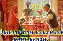 Бик зур бәйрәм икэн бүген, ӘБИ -БАБАЙЛАР көне! Дәү әниләр, дәү әтиләр, Котлыйбыз бүген СЕЗНЕ! Дәү әниләр, дәү әтиләр Гаиләдә булсалар, Тәрбияле, мәрхәмәтле булып үсә балалар.
