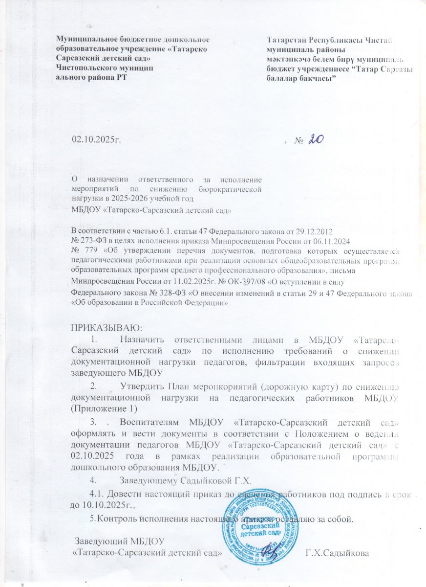Муниципальное бюджетное дошкольное образовательное учреждение «Татарско-Сарсазский детский сад" Чистопольского муниципального района Республики Татарстан