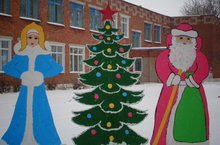А сегодня на школьном дворе появились огромные фигурки Деда Мороза, Снегурочки, нарядной елки и сказочных персонажей. Это огромный труд всего педагогического коллектива.