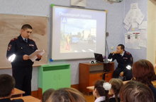 В рамках проведения декадника «Пешеходный переход» в МБОУ «Татарско-Сарсазская ООШ» 16 ноября 2017 года была встреча с сотрудниками ГИБДД, приуроченная профилактике дорожно-транспортных происшествий. Командир трассового взвода Чистопольского муниципального района РТ Тимофеев Владимир Николаевич рассказал учащимся о значимости световозвращательных элементов-фликеров и о соблюдении правил дорожного движения.