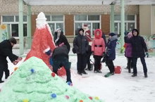 Мәктәп яны территориясендә кардан төрле фигуралар яасдык.