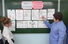Среди учащихся 6 класса был организован конкурс рисунков на тему"Знай и соблюдай правила дорожного движения".Победители конкурса на выставке рисунков комментируют свои рисунки.