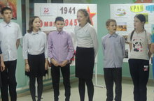 Учащиеся 6 класса у стенда «История в лицах» Личности ТАССР и РТ.