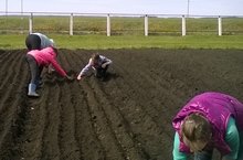 Сегодня учащиеся на пришкольном участке сеяли морковь.