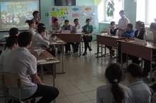 «Татарстан - наш общий дом» - под таким названием прошло мероприятие(организатор – учитель истории Галиуллина В.Т.), где учащиеся из 6 районов, которые обучаются в нашей школе, защищали честь своих районов, отвечая на разные вопросы и выполняя различные задания.
