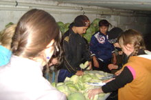 На уроке сельхоз. труда учащиеся 9 класса с желанием занимались засолкой капусты.