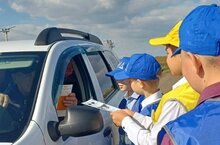 Ребята вручили водителям памятки, в которых призывали не нарушать правила дорожного движения. -