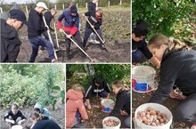 Осенние работы на пришкольном участке. Ребята собрали хороший урожай.