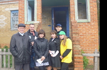 Возле дома, на дворе.