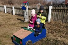 Тучею клубится.Дети во время дневной прогулки в свободной деятельности, весело играли на участке детского сада и катались на легковой машине.