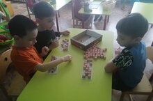 Каждый свою цифру ждет.Дети в свободное время играют в "Русское лото".