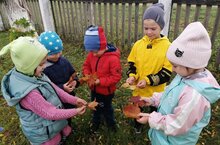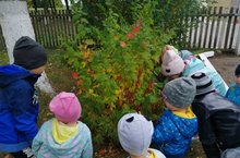 Дети во время дневной прогулки наблюдали за листьями кустарника. Отметили сезонные изменения в жизни растений в осеннее время.