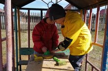 С праздником всех, с Воскресеньем!Дети во время дневной прогулки делали куличи из песка.