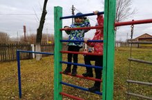 На рекорды нас зовет.Дети во время физкультуры на свежем воздухе - Лазанье по гимнастической стенке.