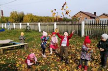 И один листок возьму.Дети в последние теплые дни золотой осени во время дневной прогулки играют с осенними листьями.