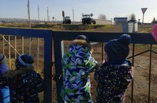 Фыркал паром и пыхтел.Дети во время дневной прогулки наблюдали за транспортом, на этот раз был трактор.