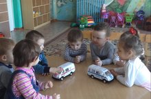 Цель: Познакомить детей ясельной группы с машинами специального назначения "Скорая помощь" и "Полицейская машина". -