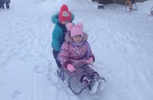То и дело мои санкиУбегают от меня.Дети старше-подготовительной группы во время спортивного праздника "Зимние забавы". Эстафета "Быстрые санки".