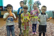 Слушай, слушай, различайЗвук короткий и протяжный,Чувство ритма развивай,Это очень, очень важно!Дети старше подготовительной группы учатся играть на музыкальных инструментах.