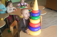 Дети ясельной группы любят собирать пирамидки.