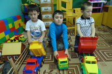 Дети старше-подготовительной группы в свободное время играют с автомобилями. -